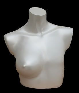My biggest issue is how to display the thing. Your average female mannequin has two perky breasts. I found a one tit mannequin on eBay, but, hello? $89.99! And it's not even the correct boob.